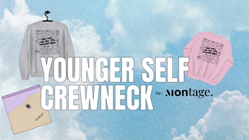 Inspired by those middle school grad class hoodies. Meet the younger self crewneck by: the Montage community.